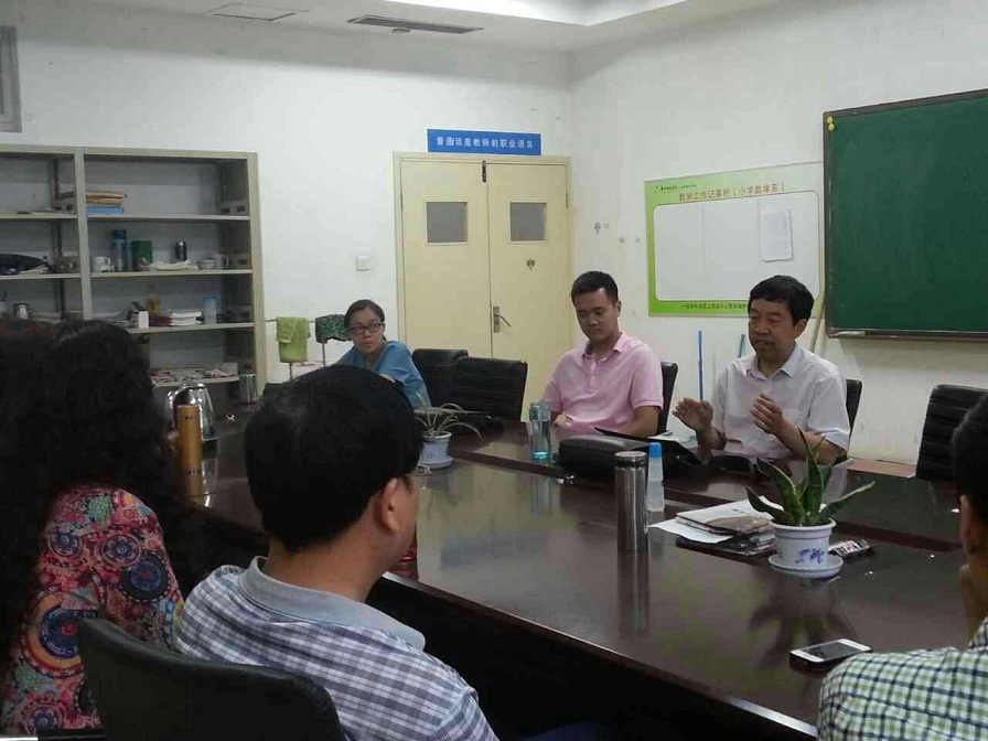 为配合初等教育学院举办的各类教学技能比赛,规范教师的课堂教学,促进教师的专业发展借助学校即将召开的第三届科研工作大会看,5月25日下午,初等教育学院小学数学系的全体教师在7417召开了教师专业发展专题研讨会,由初等教育学院客聘教授梁俊奇结合自己的发展经历与老师们进行了广泛的沟通交流。
