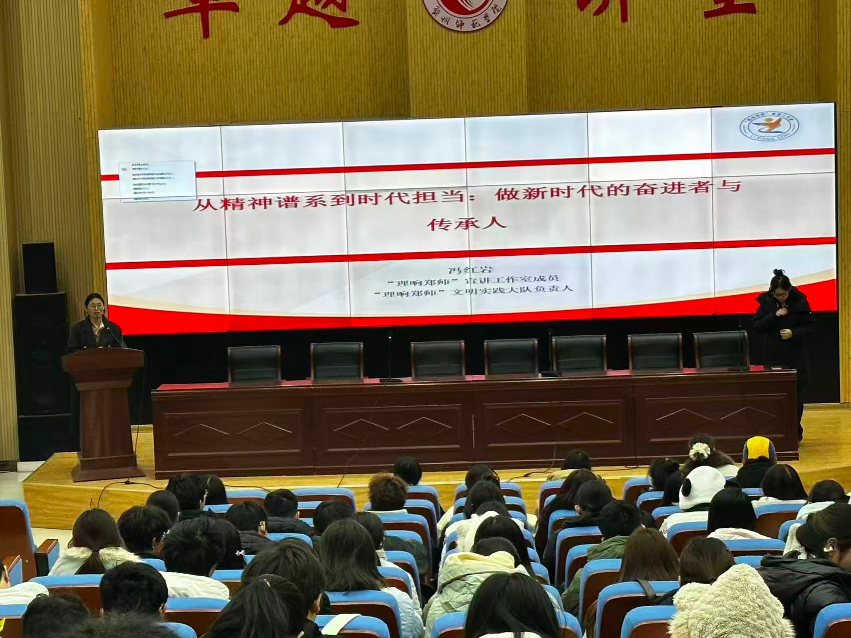 为深入贯彻落实国家及河南省关于高校红色精神宣传教育的相关通知要求,切实引导师生传承红色基因、勇担时代使命,12月12日,教育学部以“从精神谱系到时代担当:做新时代的奋进者与传承人”为主题,组织开展“中国共产党人精神谱系”专题宣讲活动,初等教育学院学生干部、入党积极分子、发展对象等60余名青年骨干师生参与学习。