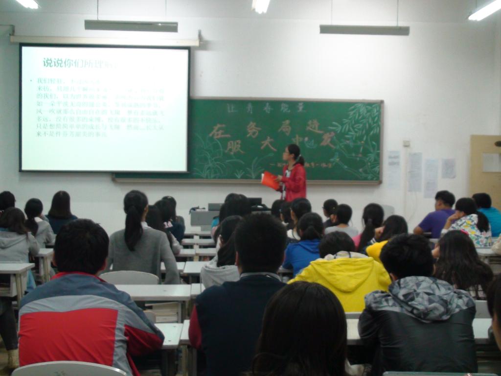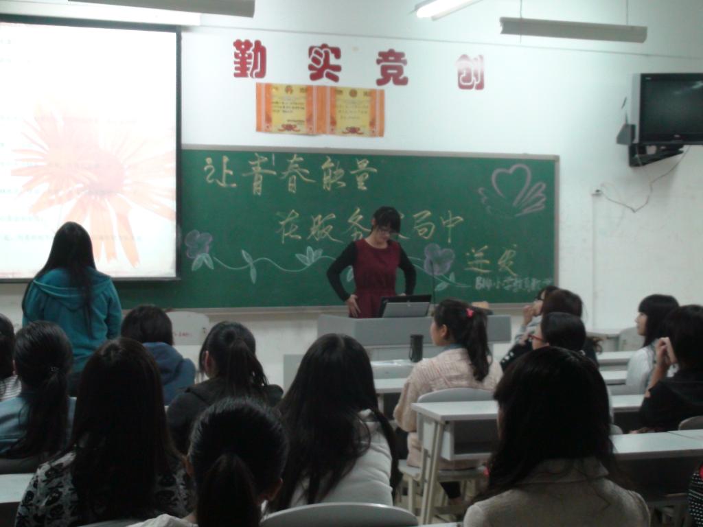 五年制的同学通过问答形式,积极提问,积极对答,说明了自己对青春的理解,阐述了自己对青春服务大局的渴望与坚持。其中一个班用小诗《青春的价值》使同学们更深入了解了青春的含义。四年制同学则通过PPT形式向大家展示了青春的力量,B14英语班同学别出心裁,将自己班参加活动的照片做成了幻灯片,并插入《平凡之路》这首歌曲播放,让在座的同学都深受感触。同时,这也激发了同学们为青春、为服务社会而奋斗的热情。