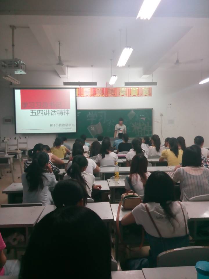 5月20日,初教院13级四年制和13级五年制全体学生在七号楼召开了以“学习习总书记五四讲话精神”为主题的政治学习会议。