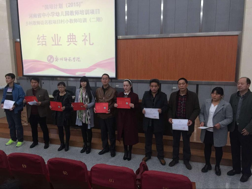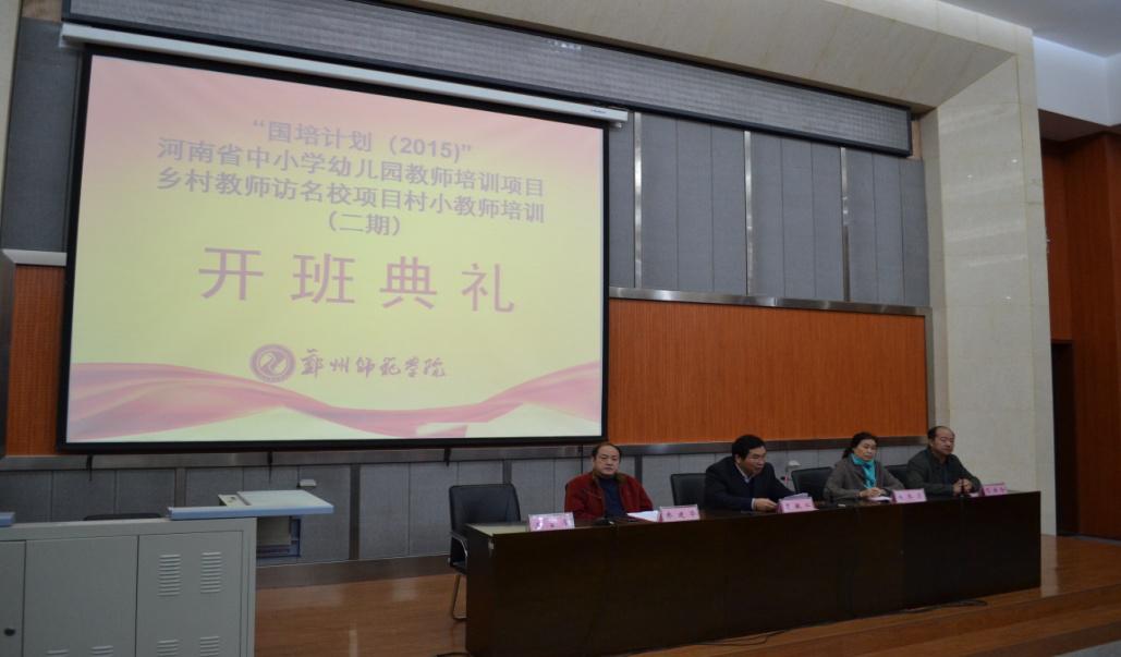 2015年11月8日,“国培计划(2015)”——河南省中小学幼儿园教师培训项目乡村教师访名校项目村小教师培训班(二期)开班典礼在我校综合楼A301室举行,副校长贾敏仁、继续教育学院书记巴继伦、院长乔建华、初等教育学院院长陈冬花,以及来自全省各地农村小学近百名骨干教师参加了开班典礼。