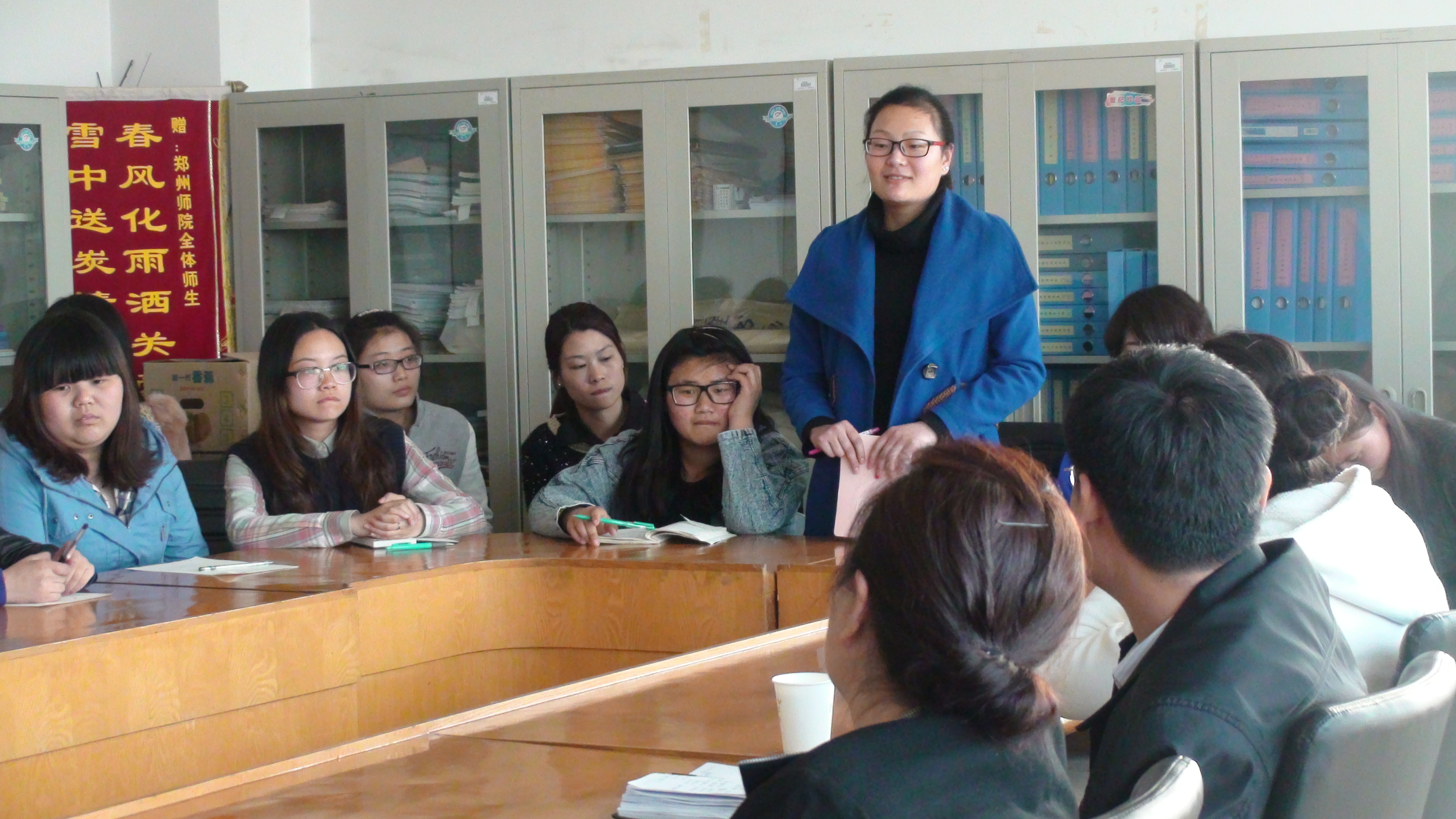 3月20日下午,党委书记于向英在党政办主任王治浩、学生处处长杨朝红、就业指导中心主任陈磊、团委副书记王珊的陪同下,来到初等教育学院,开展群众路线教育实践活动调研走访。