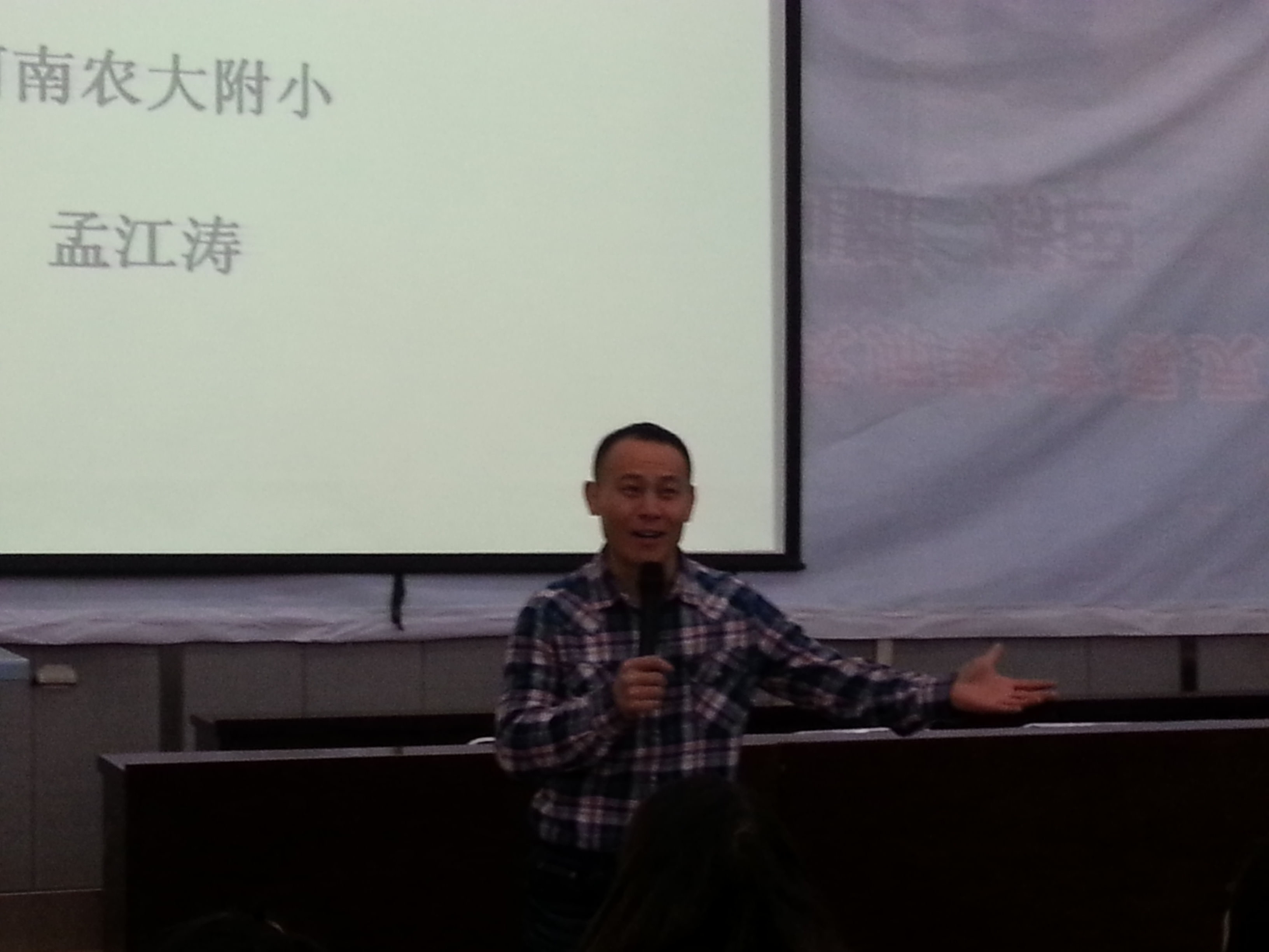 2013年12月17日下午,河南农业大学附中小学部优秀教师孟江涛应邀为初等教育学院师生作了题为“肢体语言在小学英语教学中的应用”的讲座。