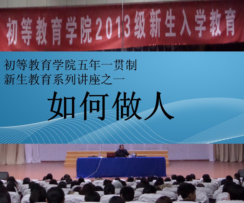 11月11日晚,初等教育学院五年一贯制大专教学部针对2013级新生,在七号报告厅启动了“新生教育系列讲座”的序幕,这次讲座是系列讲座的第一个,由初等教育学院原党总支书记王庚寅老师主讲《如何做人》。