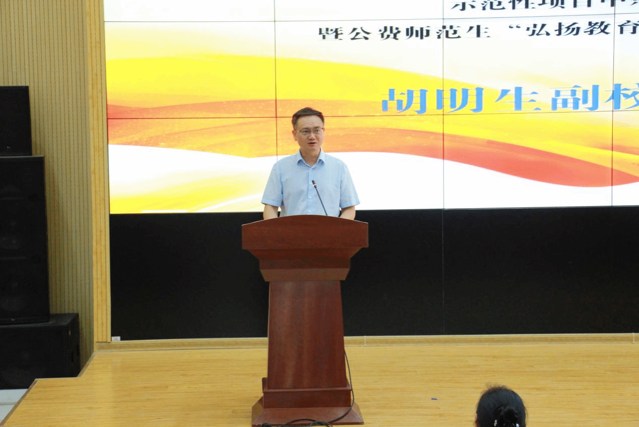 胡明生副校长在致辞中强调教育对国家发展的重要性,指出教育质量是教育发展的核心。学校积极践行教育强国战略,依托系列性项目建设和专项活动探索创新教育发展路径,通过提高师范生的理论水平和实践能力,积极响应我校“一五一十”发展战略,推动学校师范教育高质量发展。他还特别感谢与会的一线教学名师在我校师范生培养中做出的突出贡献。