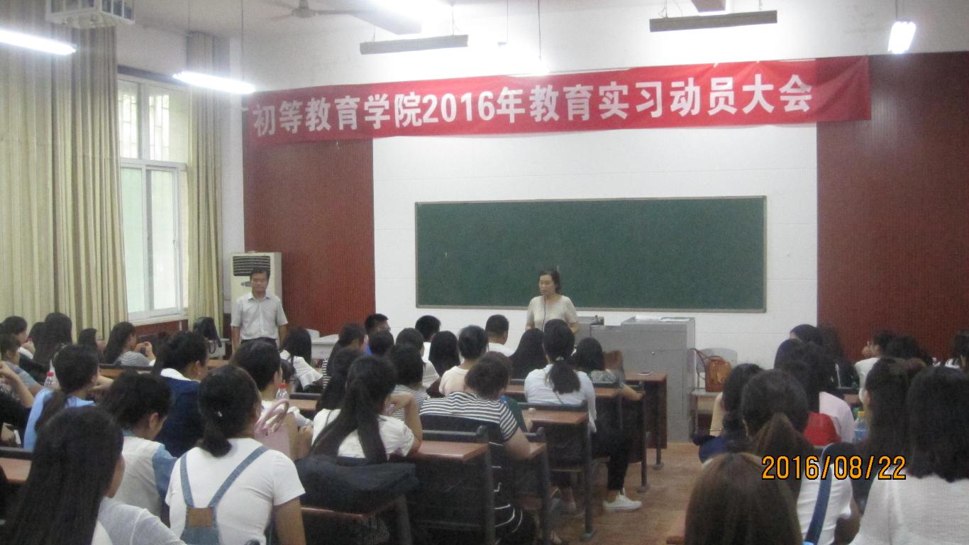为加强师范生实践教学环节管理,提高教育实习的质量,切实保证学生能够深入小学开展教学活动,8月22号下午,初等教育学院在七号楼7108教室召开了实习动员会,陈冬花院长围绕学生就业情况对实习的意义进行了详细要求和中肯建议,侯宏业副院长对学生的实习工作做出了具体要求。由于8月25日小学将正式开学,为了让学生有完整的实习周期,初等教育学院对2016学年实习的本科13级、专升本15级、五年制12级进行了统一的周密安排。在会议结束后,200余学生将赴荥阳、登封、新密、新郑、中牟及郑州市各区开始实习工作。
