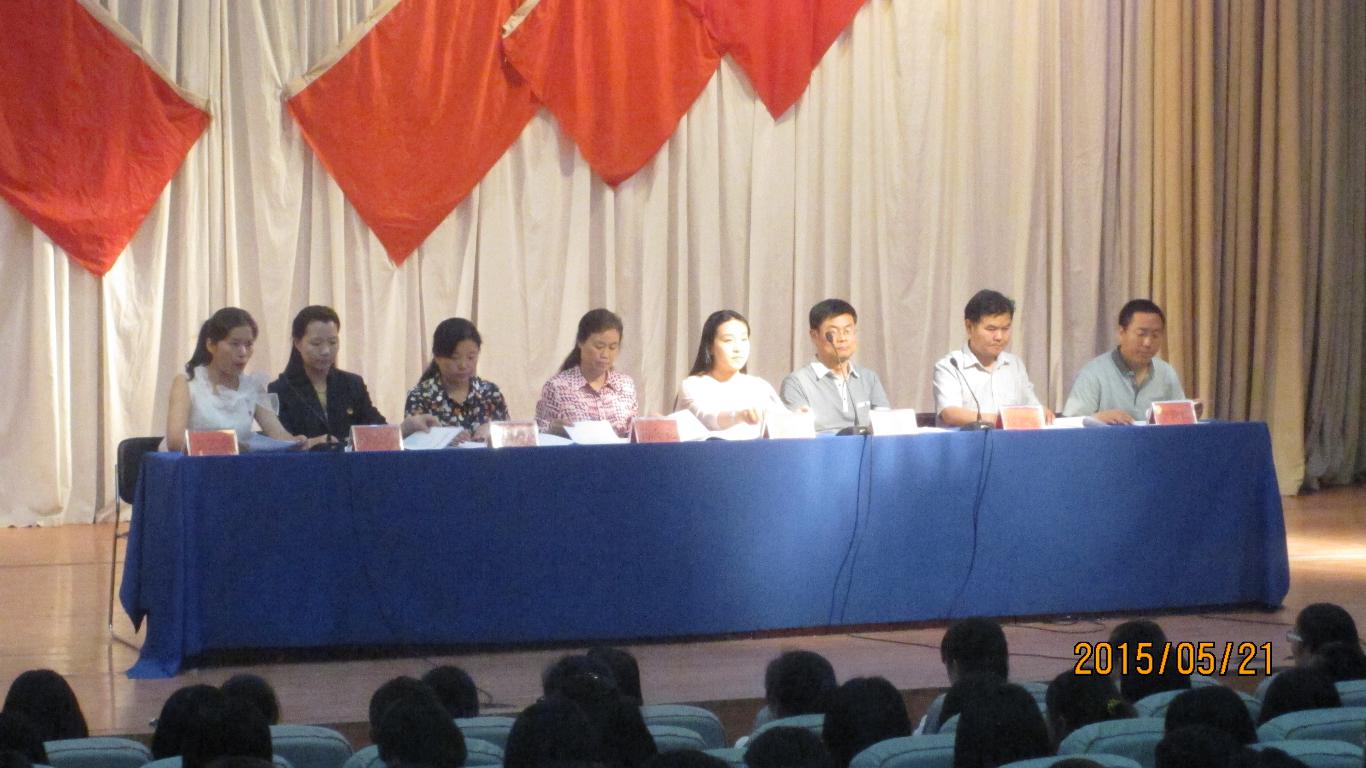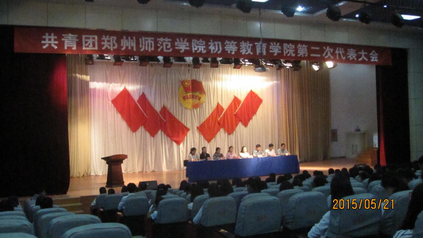 2015年5月21日晚六点半,初等教育学院第二次团员代表大会在西校区七号报告厅隆重召开。莅临本次大会的领导有:郑州师范学院团委副书记朱晔、初等教育学院党总支书记刘世战、院长陈冬花、副院长侯宏业、办公室主任王智红、团总支书记陈艳秀、五年一贯制大专部主任李营辉、各位老师代表。
