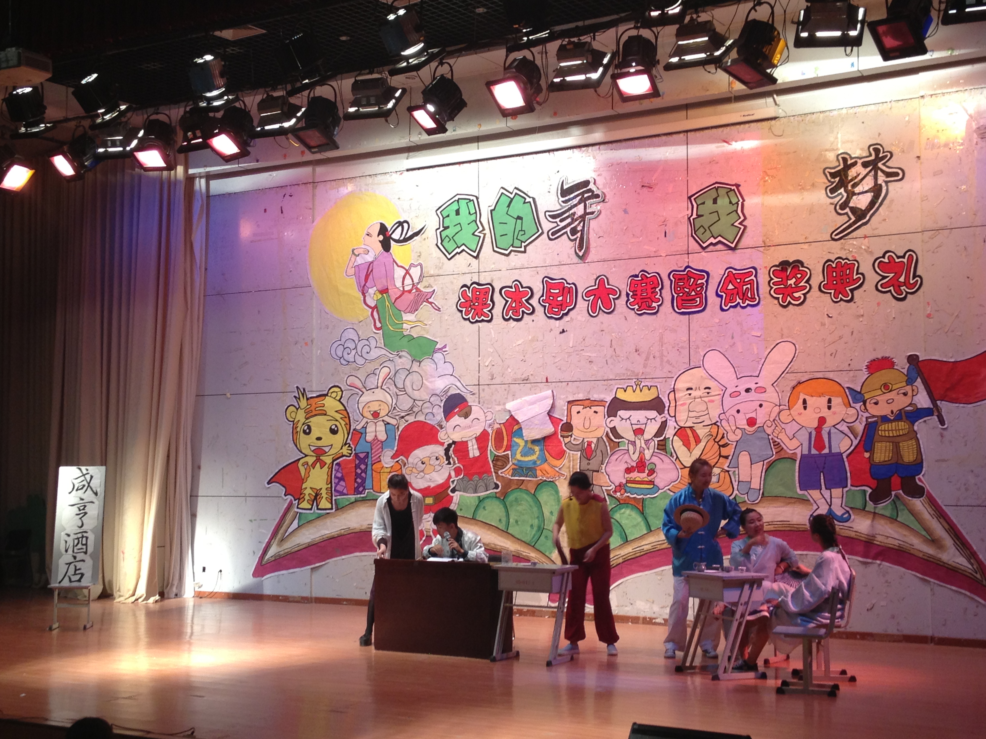 本次活动由“戏剧社”骨干吴为翔、薛文龙等和初教院大专部干部张领、符颢哲等组织干部团队对各年级、班级的剧目层层选拔,分别进行了初赛、复赛、决赛。活动负责人陈福杰老师在剧本甄选、演员选拔以及剧情结构、台词表演、人物塑造包括服装道具等方面为同学们做了精心的辅导。最终,09级文一班的《孔乙己》表演形象、生动逼真,获得一等奖, 10级英语班的《项链》和12级文科三班的《灰姑娘》以及09英语班英语版的《丑小鸭》、《小红帽》等八个剧目表现也很出色,分别获得二、三等奖。由“戏剧社”精心打造、曾获校园剧目奖的《昭君出塞》再次让大家享受了精彩的视听盛宴。