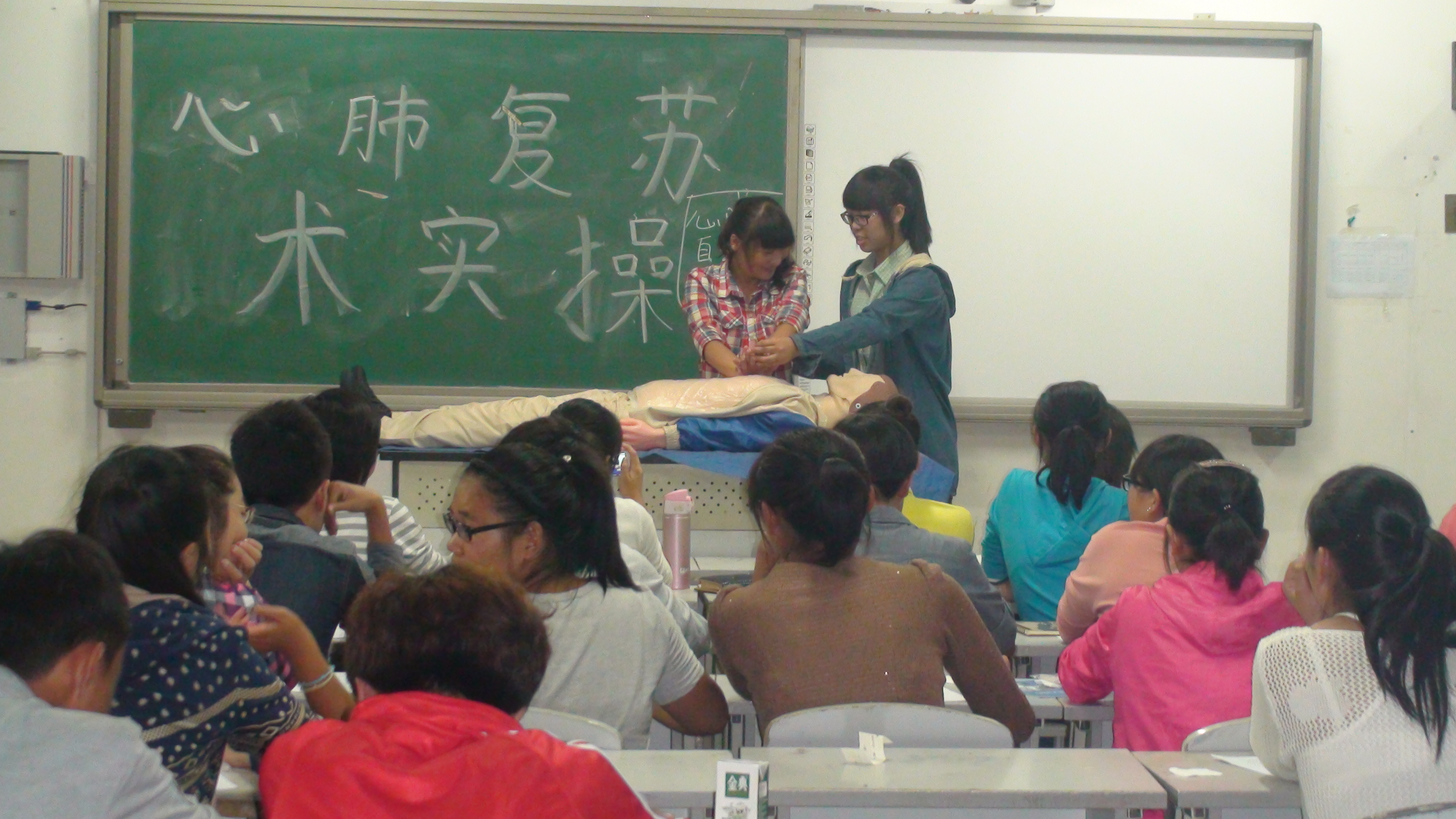 徒手心肺复苏术是在意外现场针对心跳骤停立即采取的紧急抢救措施。此次活动采取现场教学,利用模拟人体模型授课。随后,初等教育学院三、四、五年制分别派学生代表进行模拟操作。同学们按照意识判断、摆复苏体位、检查气道、开放气道、人工呼吸与胸外心脏按压等一系列急救步骤,完美的完成了模拟操作。